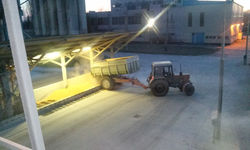 ![]() Gabona kitárolás síktárolóból | ![]() Gabona betárolás | ![]() A silóban |